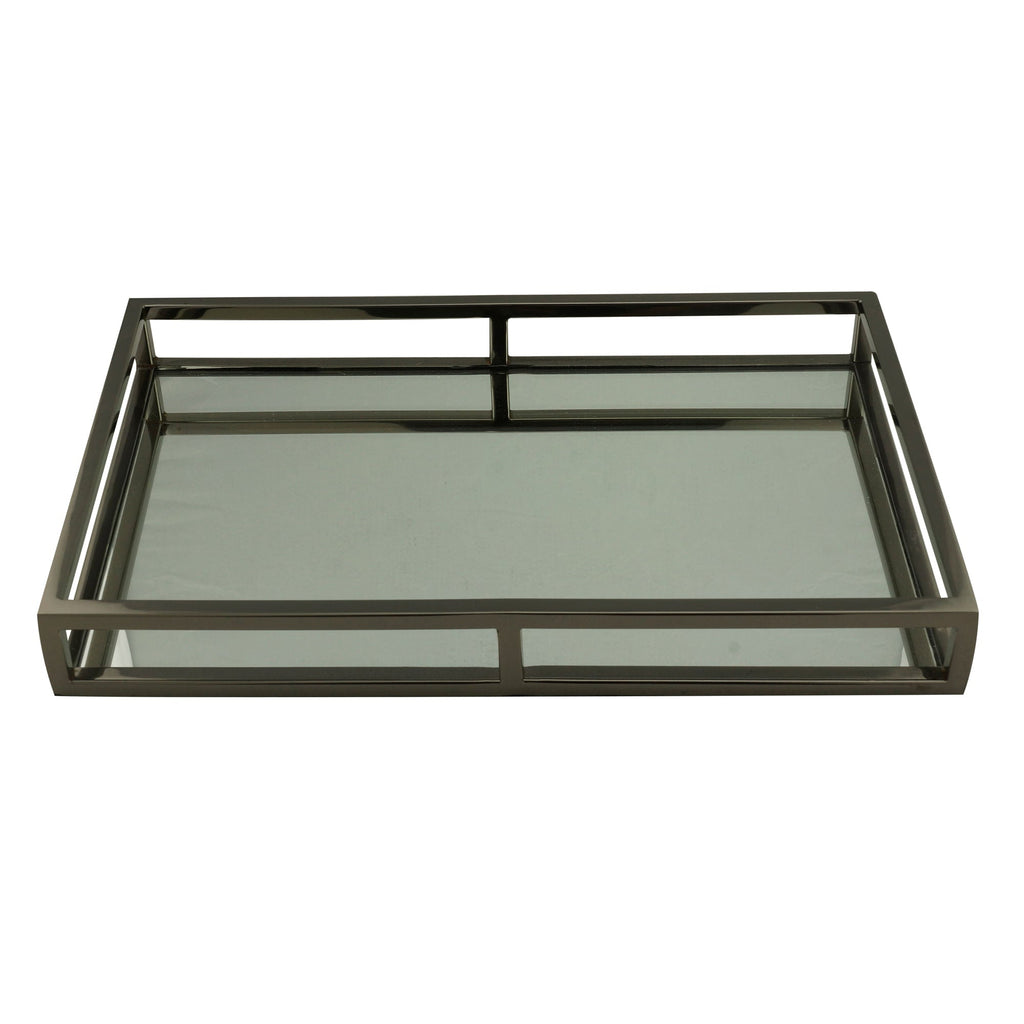 Adicione beleza e sofisticação a decoração de qualquer ambiente da sua casa com a Bandeja Aço Inox com Espelho Preta Ônix - 41cm.