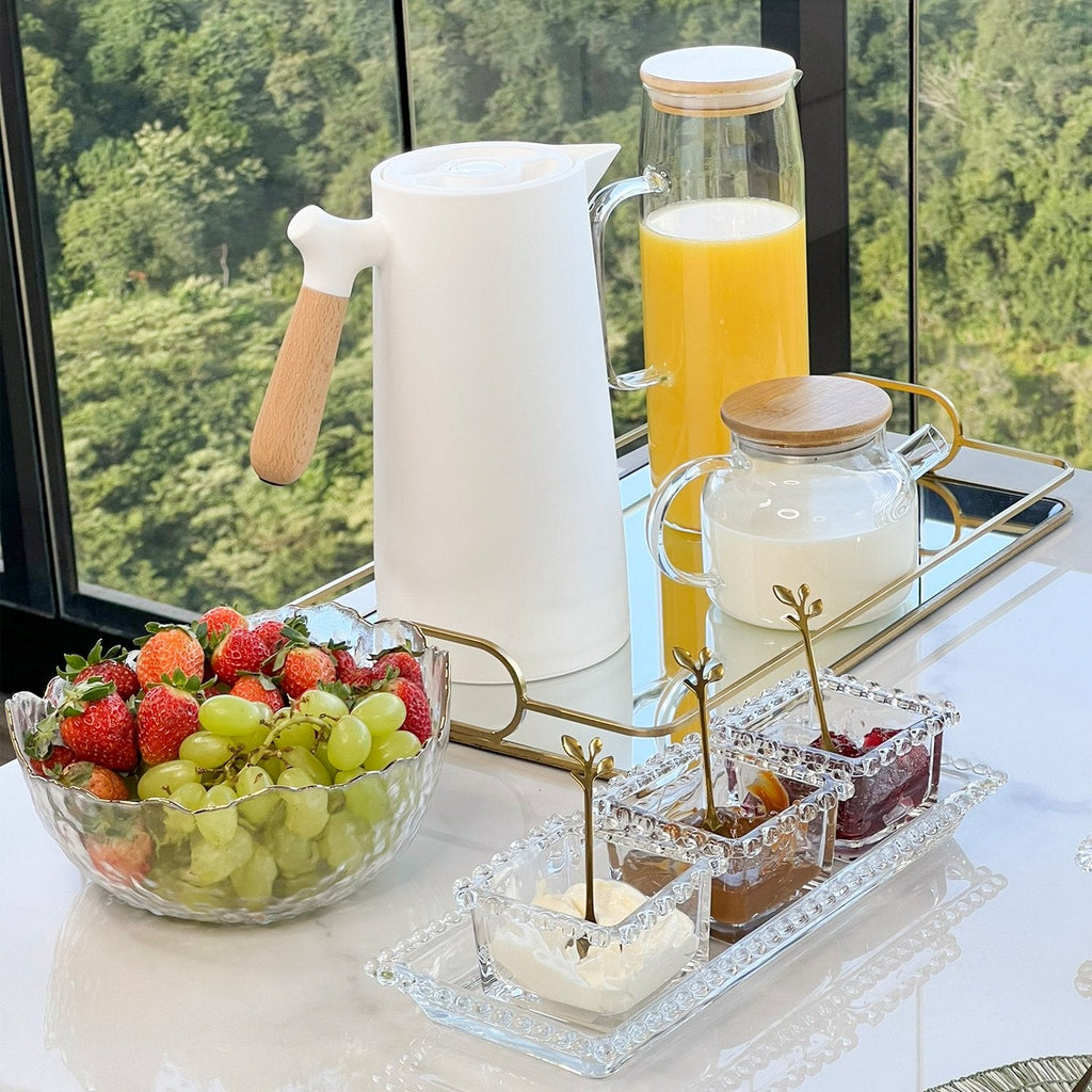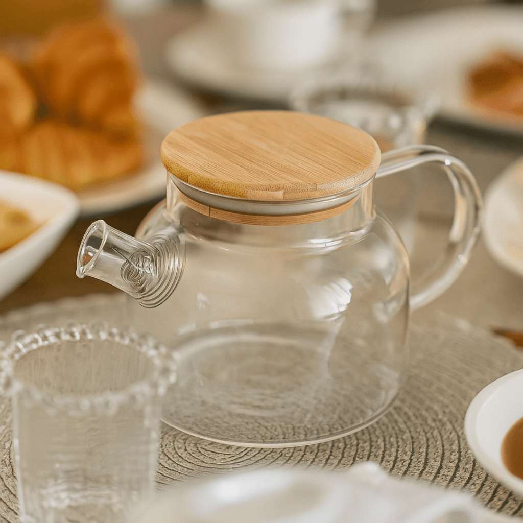 Prepare seu chá com praticidade e segurança com a Chaleira de Vidro Borosilicato com Tampa em Bambu 600ml. Pode ser levado ao fogo e facilmente pode servir seu chá, chá gelado, leite ou café.