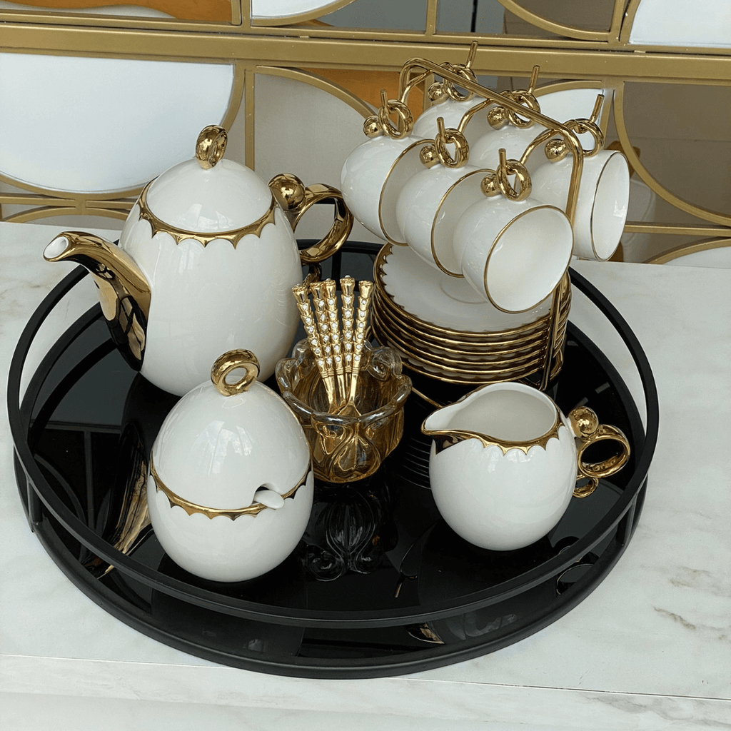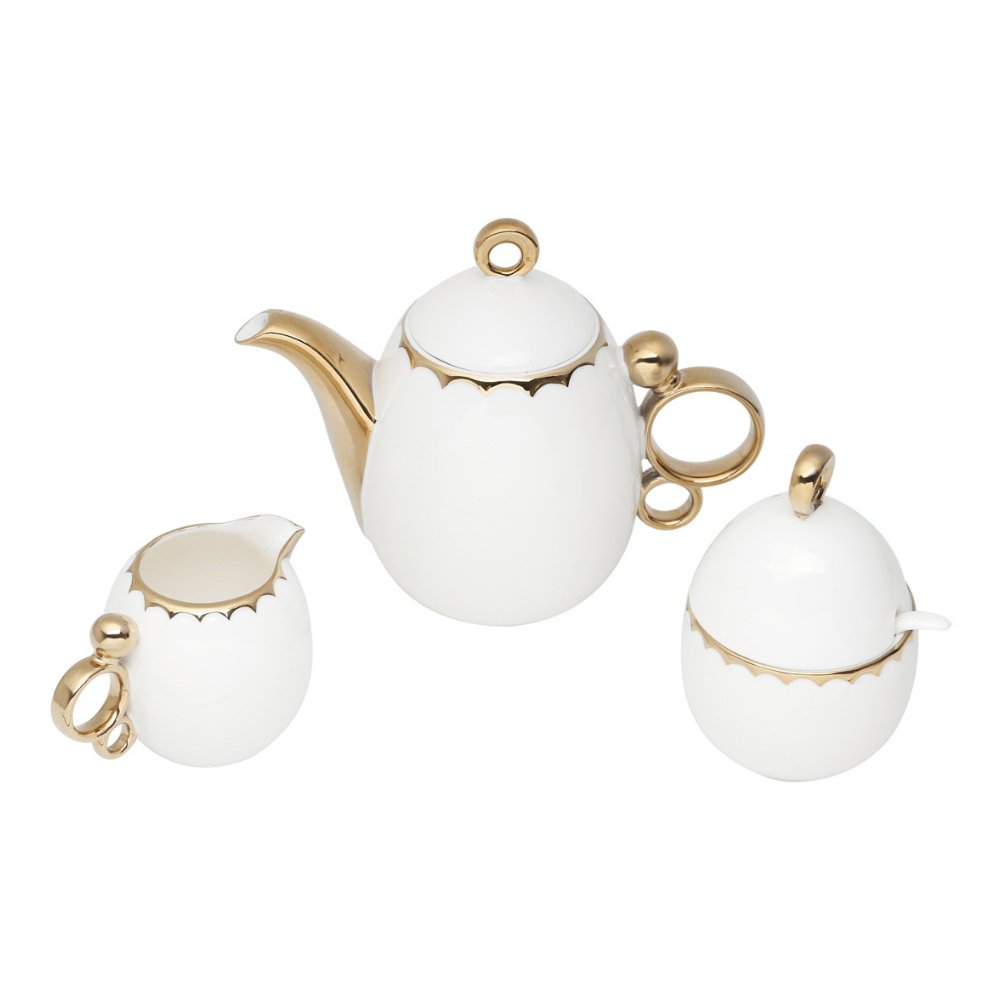 O Conjunto Para Café Bule Açucareiro Leiteira Porcelana Dourado - 3 Peças é perfeito para quem ama elegância e requinte nos mínimos detalhes.