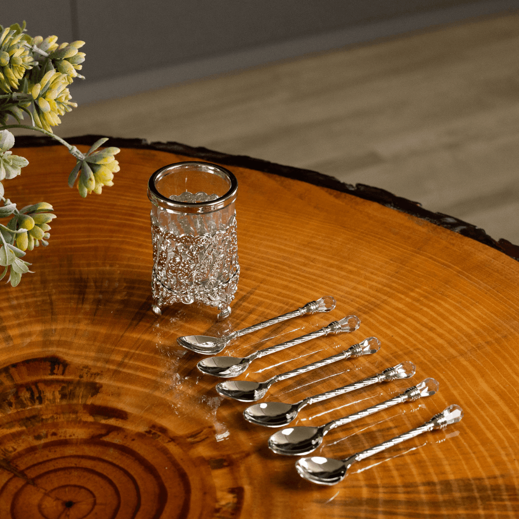 Conjunto 6 Colheres com Suporte Crystal Niquelado Zamac 14cm