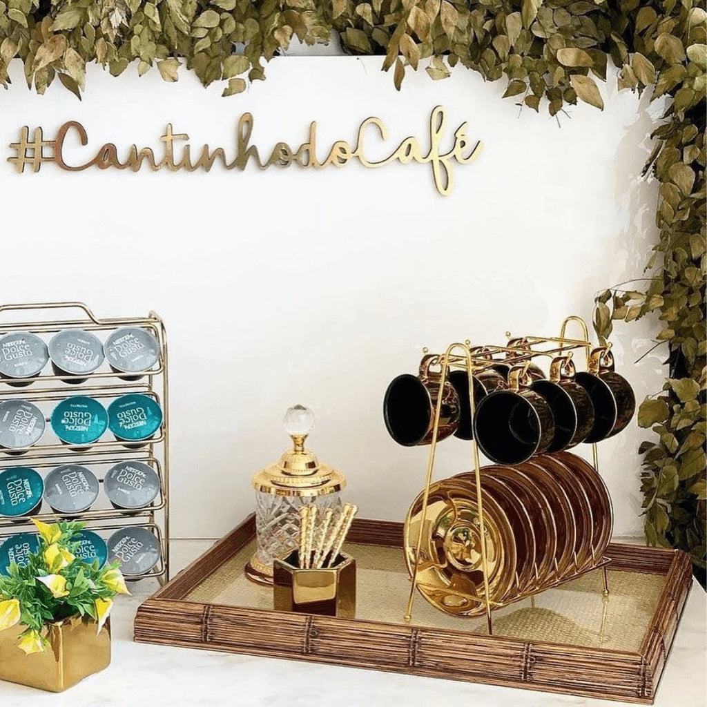 Seu cantinho do café vai ficar mais lindo que nunca com a #CantinhodoCafé!As placas decorativas são ótimas alternativas para quem busca decorar com praticidade e bom gosto. Feita em Mdf com acabamento em dourado, ela é de fácil instalação e super leve, confere um charme especial para o seu cantinho do café com a Hashtag em fonte descontraída e agradável.