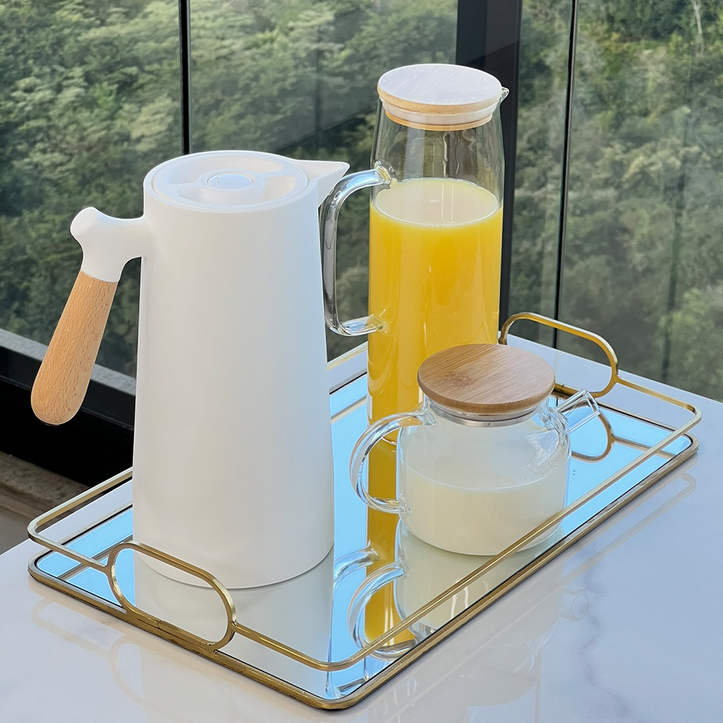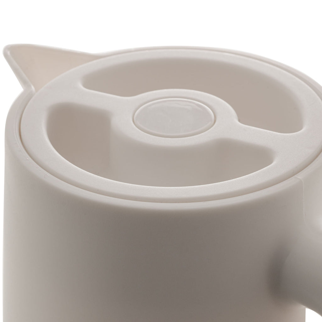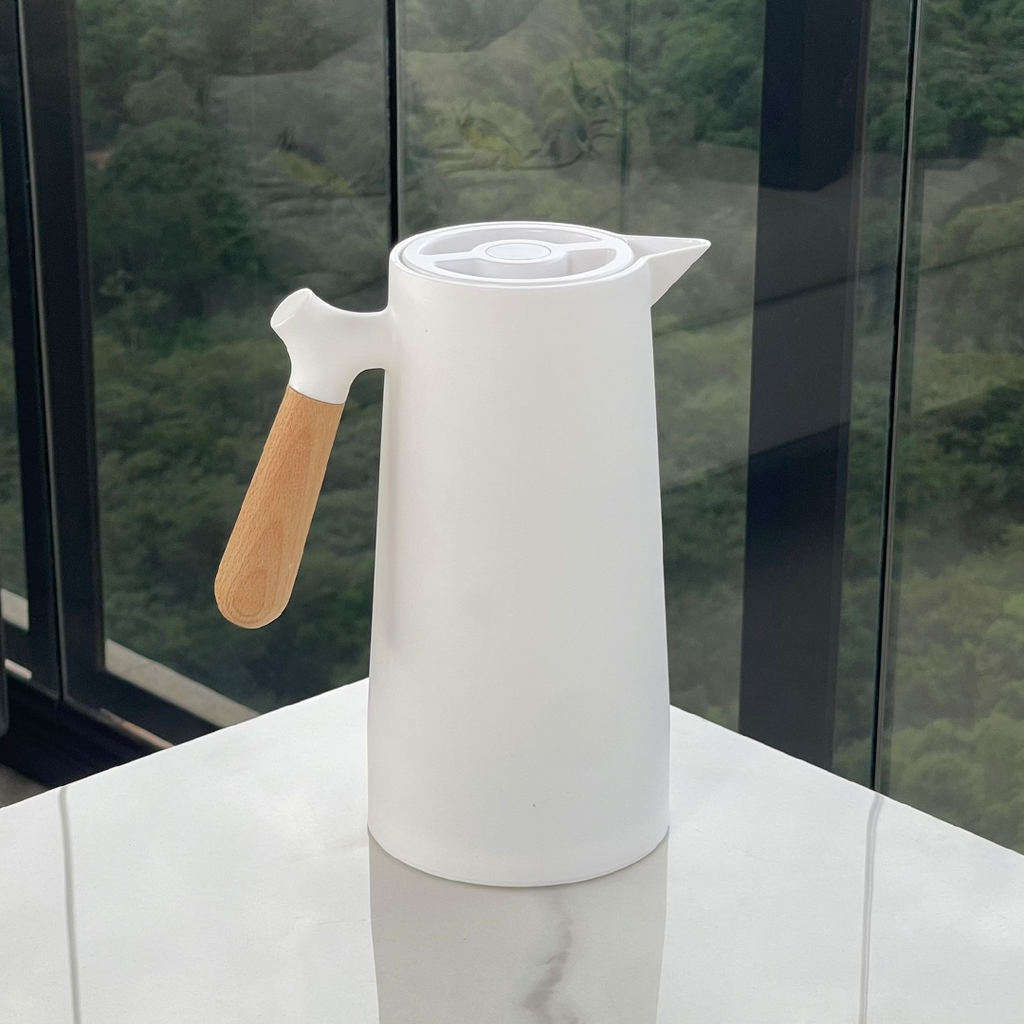 Charme, elegância e funcionalidade são características da Garrafa Térmica Nórdica Branca com Cabo de Madeira 1 Litro.
