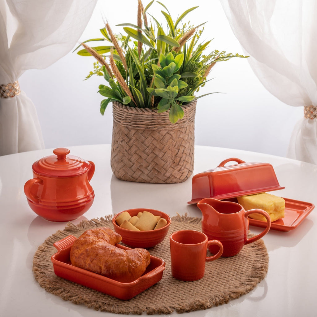 Cada xícara é confeccionada em cerâmica de qualidade com um acabamento laranja elegante.