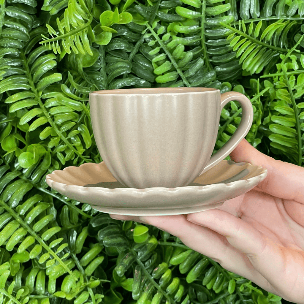 O Jogo 2 Xícaras de Café com Pires de Porcelana Pétala Areia Matt é a escolha perfeita para quem busca levar elegância e sofisticação à hora do café.