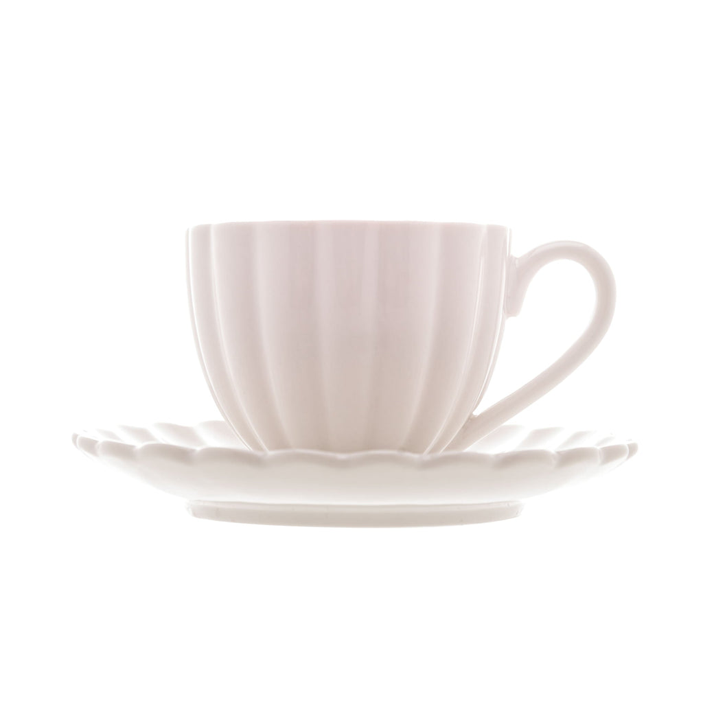 Jogo 2 Xicaras de Café Porcelana com Pires Petala Branco 90ml