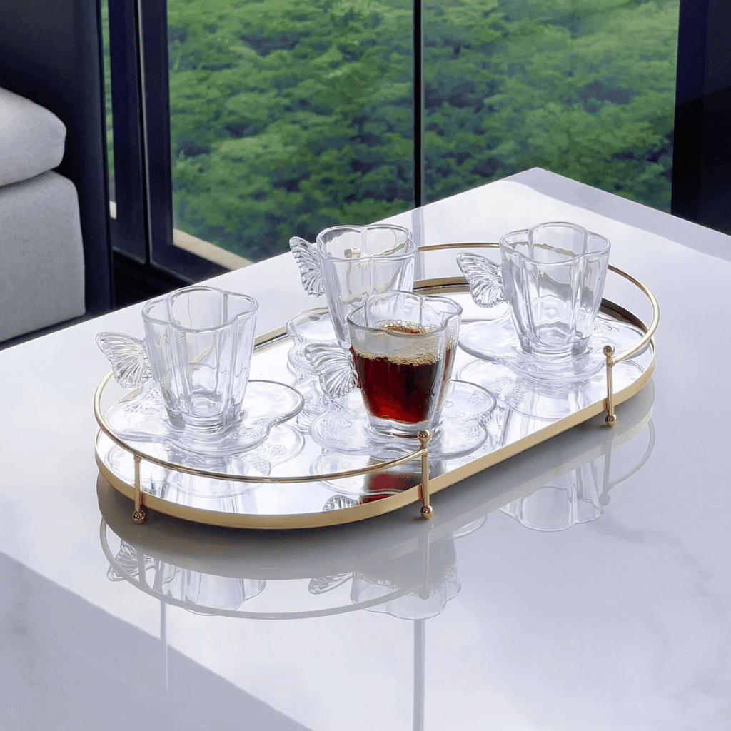 Jogo 4 Xicaras de Café com Pires de Vidro Butterfly 80ml é perfeito para quem gosta de desfrutar de um café delicioso.