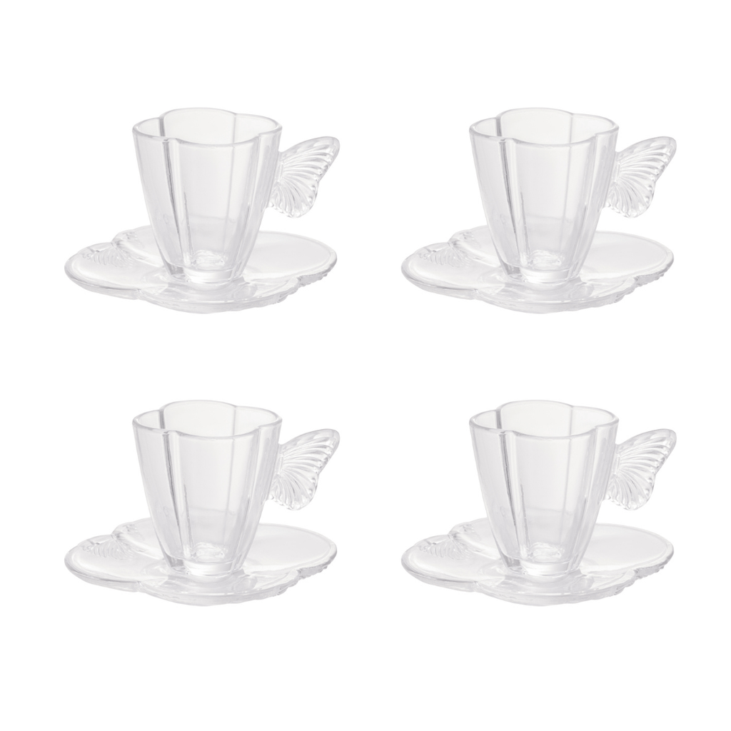Jogo 4 Xicaras de Café com Pires de Vidro Butterfly 80ml
