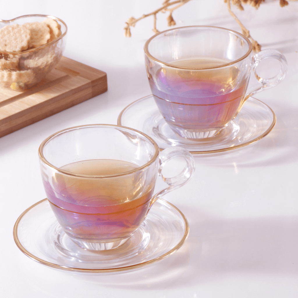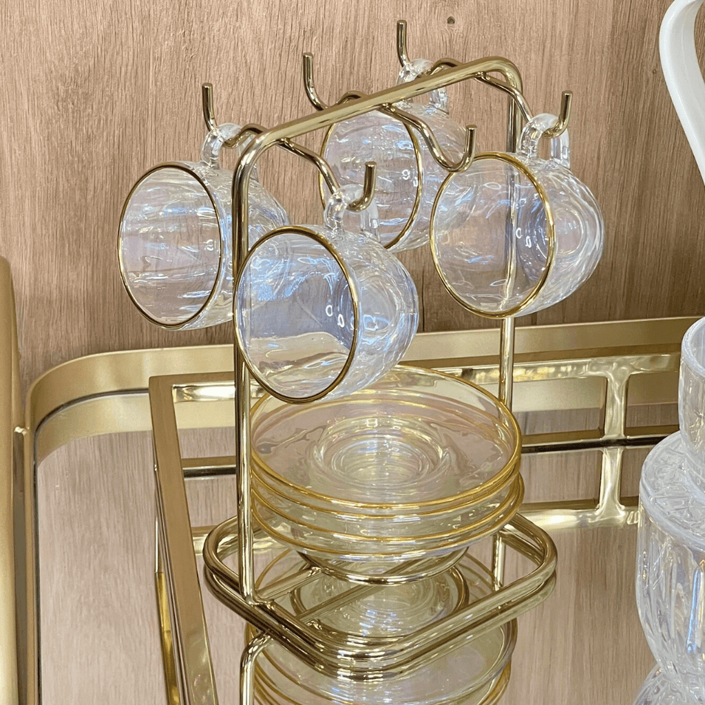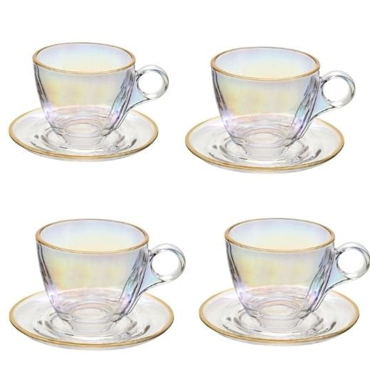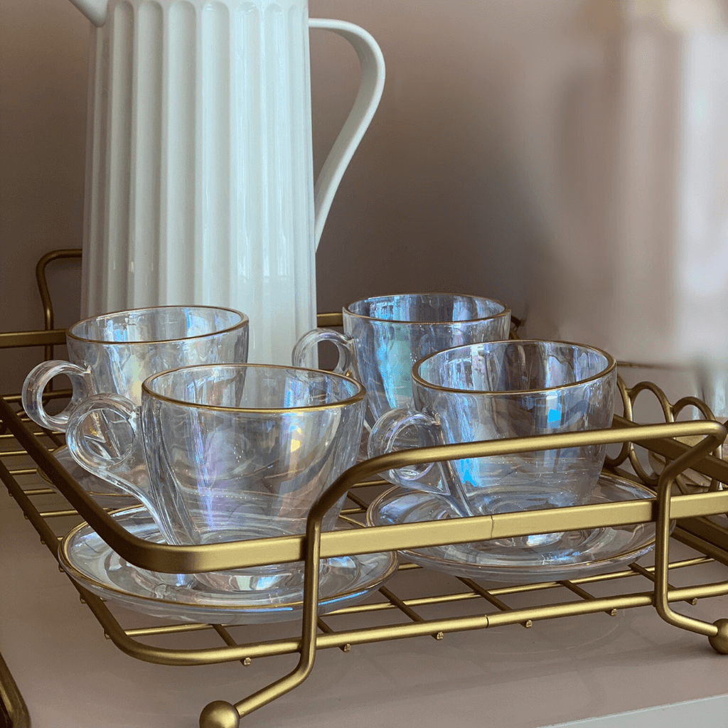 Com o Jogo 4 Xicaras de Chá com 4 Pires Menfis Furta Cor e Dourado com 170ml sua casa ficará ainda mais elegante.
