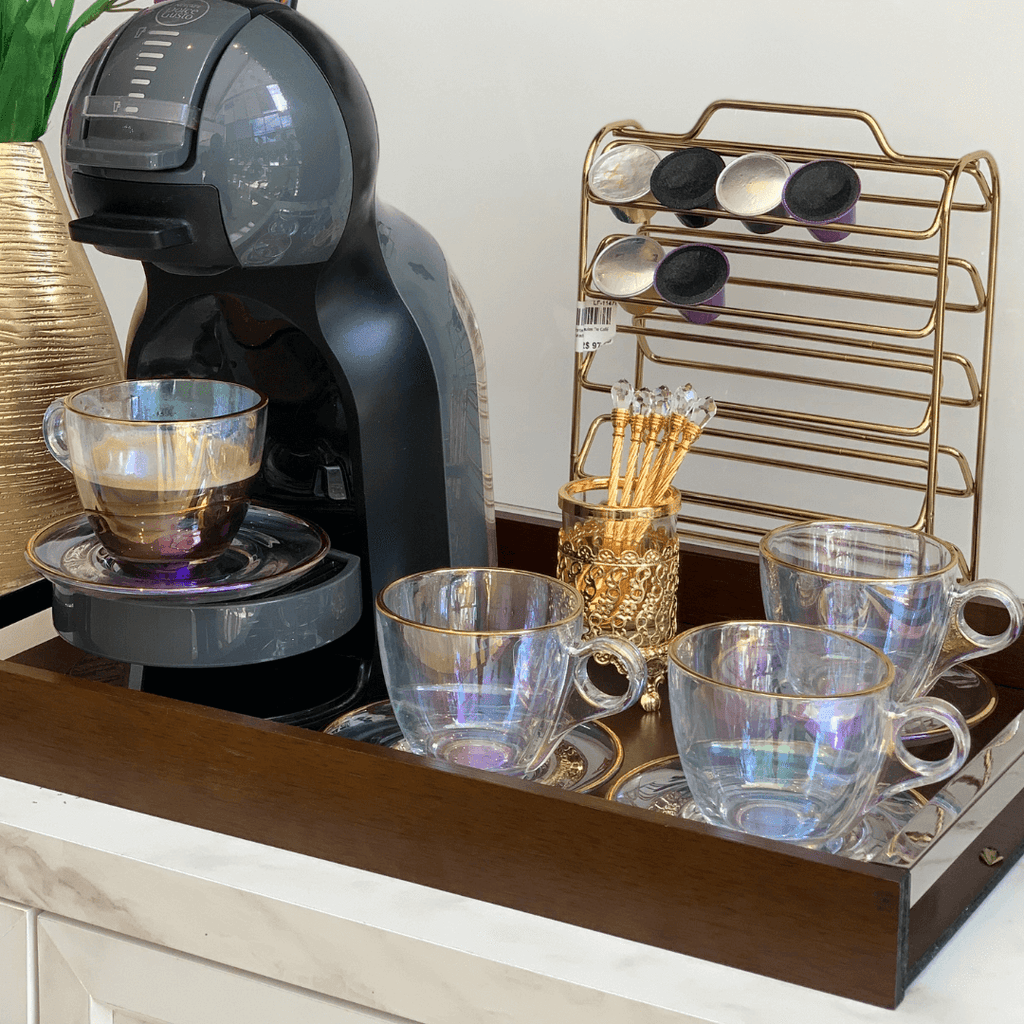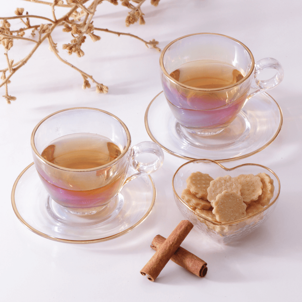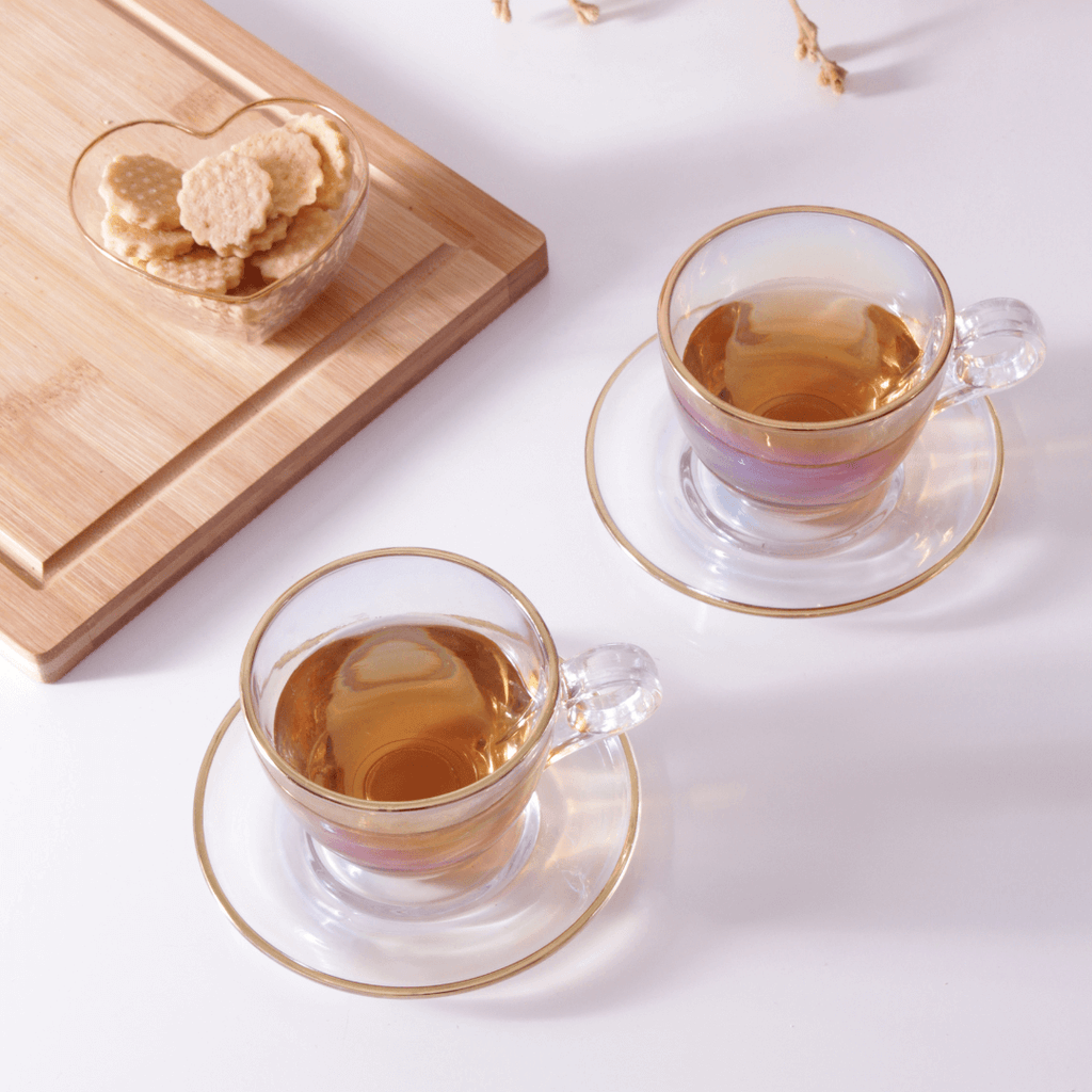 Com o Jogo 4 Xicaras de Chá com 4 Pires Menfis Furta Cor e Dourado com 170ml sua casa ficará ainda mais elegante.