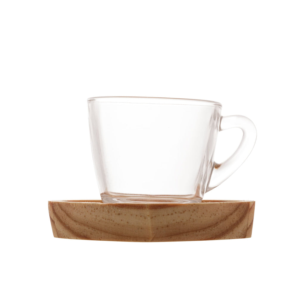 Um charme a parte o jogo de xicaras de chá com pires de madeira, faz toda a diferença na sua decoração, servir aquele chá especial para quem ama, ou decorar sua bancada ou até mesmo seu cantinho do café no seu trabalho.Xícara em vidro com pires em madeira, detalhe que faz toda a diferença. Benefícios do Produto:• Decorar sua mesa posta;• Decora seu cantinho do café, ou bancada;• Evita respingos na toalha;
