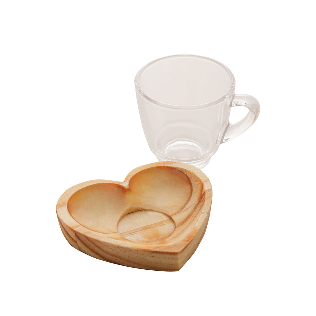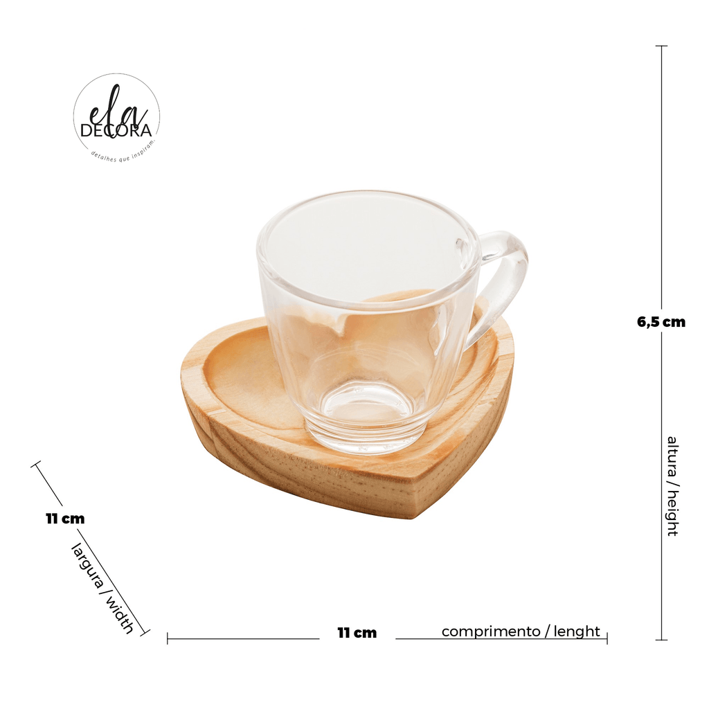 Jogo 6 Xicaras com Pires Coração Madeira Pinus 75ml
