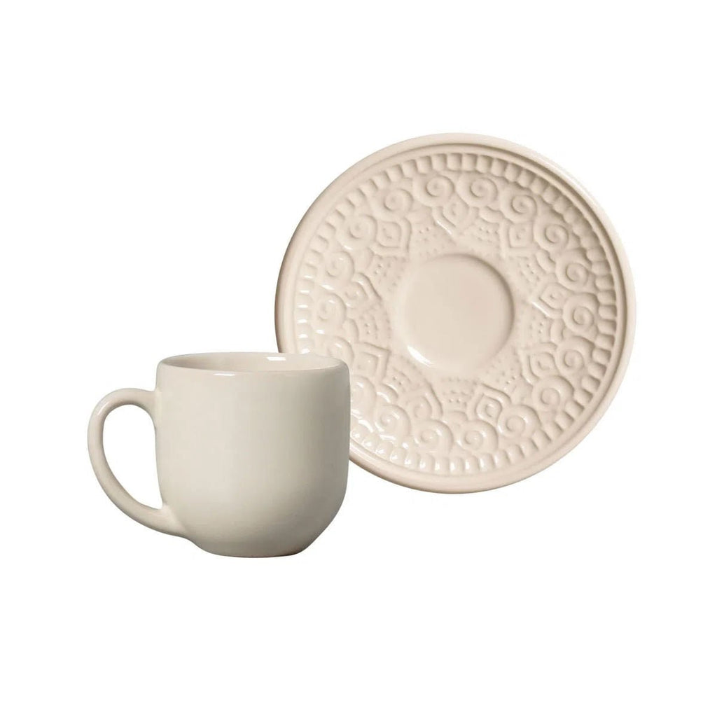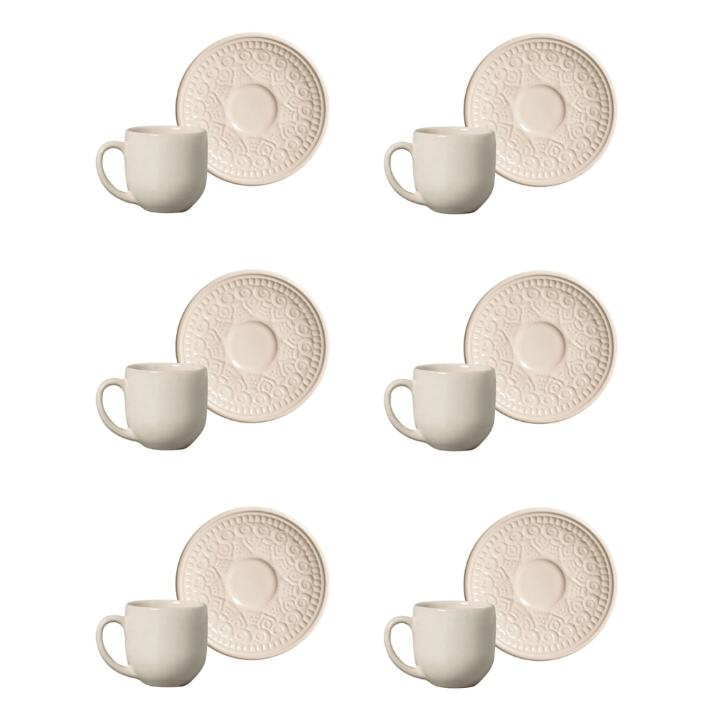 O Jogo 6 Xícaras de Café com Pires Agra Cru 112ml é um conjunto muito especial composto por xícaras de café acompanhadas por pires com design moderno e diferenciado, é a combinação perfeita entre prazer e sofisticação, deixando a pausa para o café ainda mais gostosa. Produzidas em cerâmica feldspática, são peças extremamente duráveis, elegantes e práticas, que vão deixar seus convidados encantados no momento de desfrutar de uma bela mesa de café da manhã ou tarde.