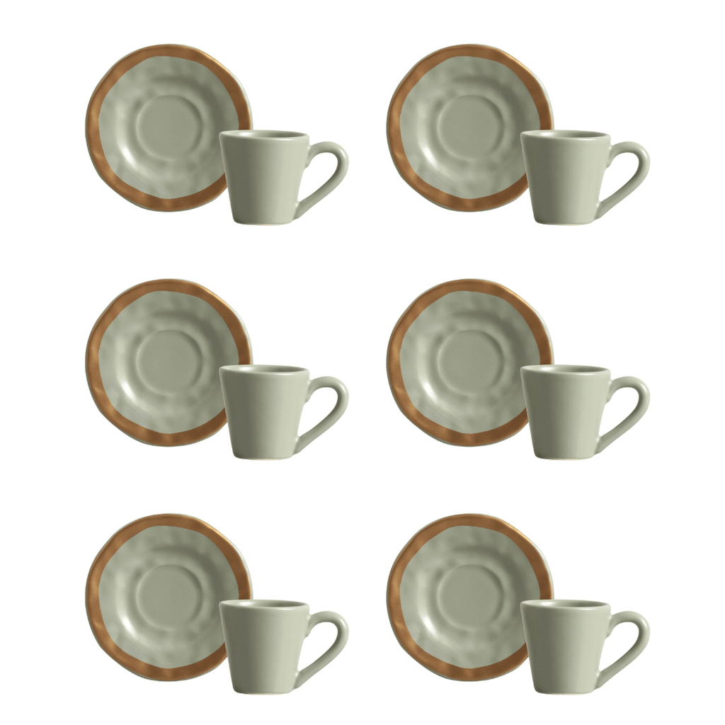 Sirva suas bebidas de forma prática e decore cada cantinho da sua casa com o Jogo 6 Xícaras de Café com Pires Amassada Verde com Filete.