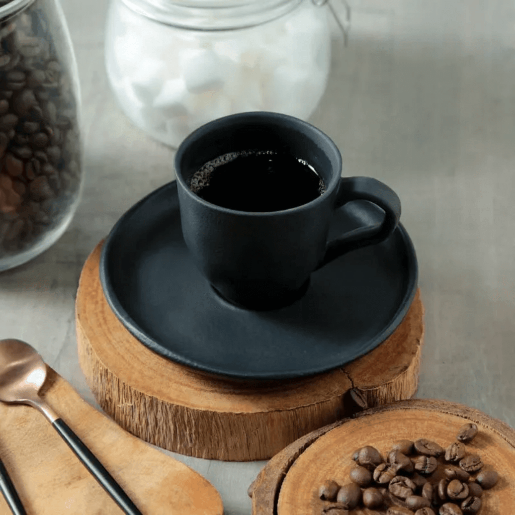 O Jogo 6 Xícaras de Café com Pires Bio Preto Matte 120ml é a escolha perfeita para os amantes de café que desejam uma experiência sofisticada e elegante.