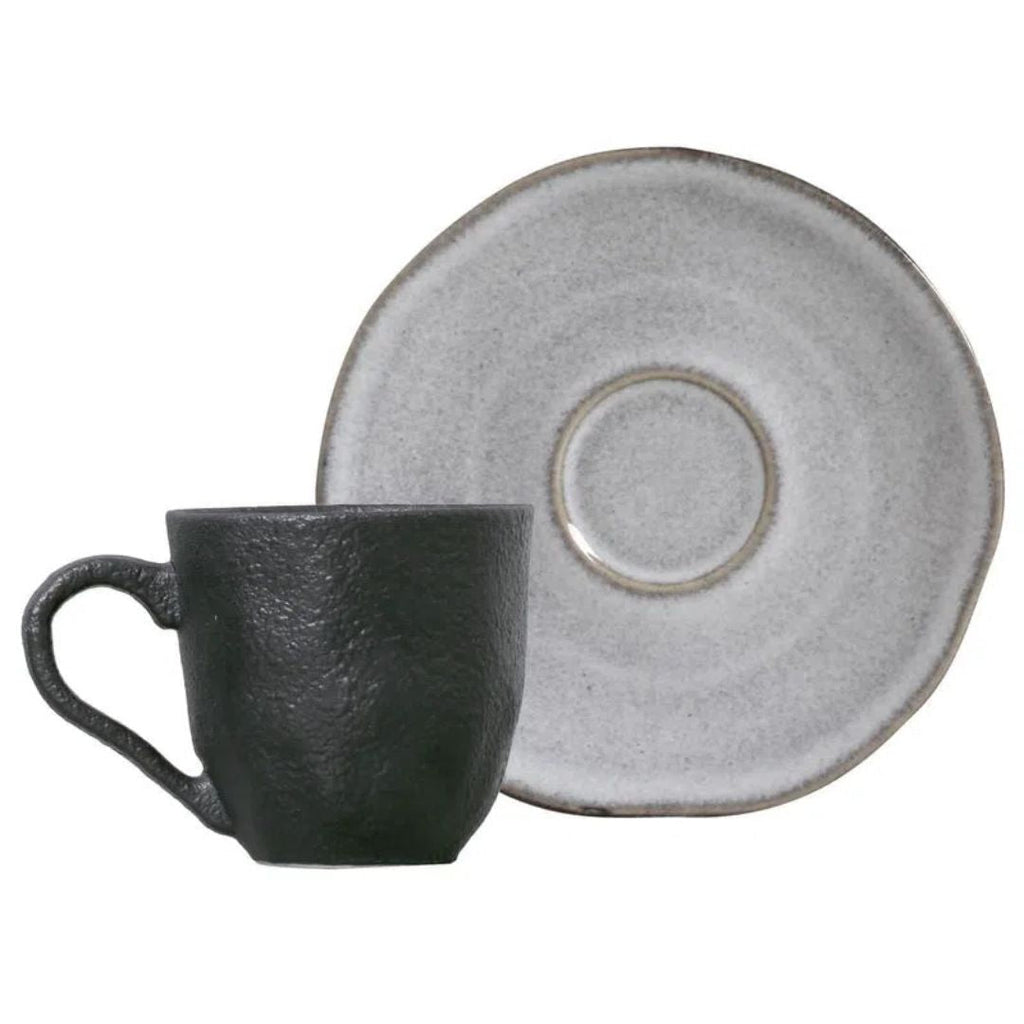 - O conjunto acompanha seis pires também em cinza concreto orgânico, que combina perfeitamente com as xícaras.