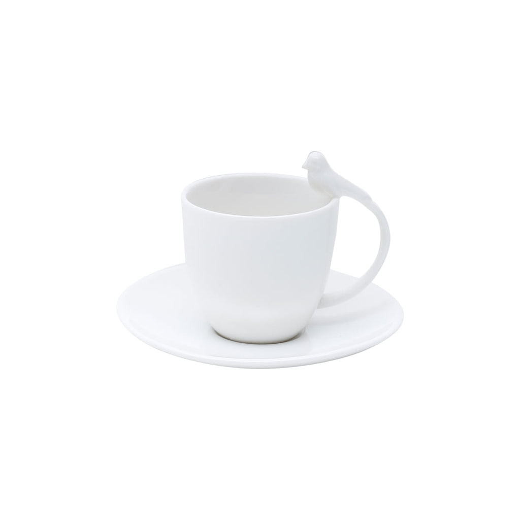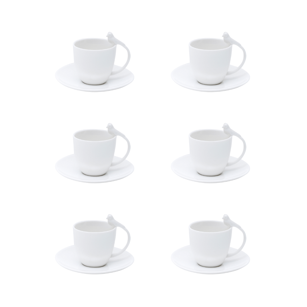 Jogo 6 Xícaras de Café Porcelana com Pires Birds Branca 85ml