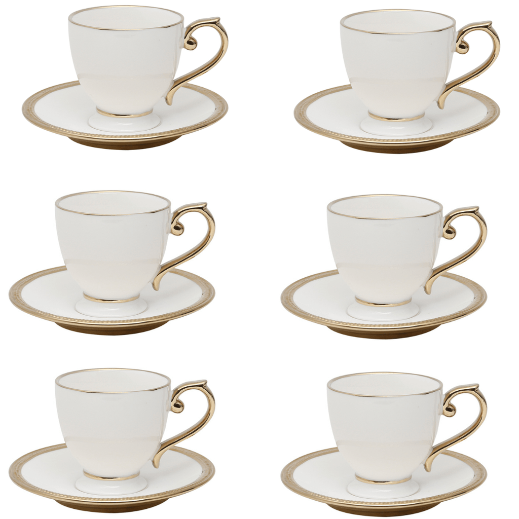 Fabricada em porcelana o Jogo 6 Xicaras de Chá Porcelana com Pires Paddy Branca e Dourada 200ml conta com lindos detalhes em dourado que conferem delicadeza às peças, seguindo a linha clássica e com muito requinte.Surpreenda seus convidados na hora servir um delicioso café ou complemente sua mesa com muita mais requinte no dia a dia. Além disso, as peças contam com todo o prestígio e qualidade da marca alemã Wolff.
