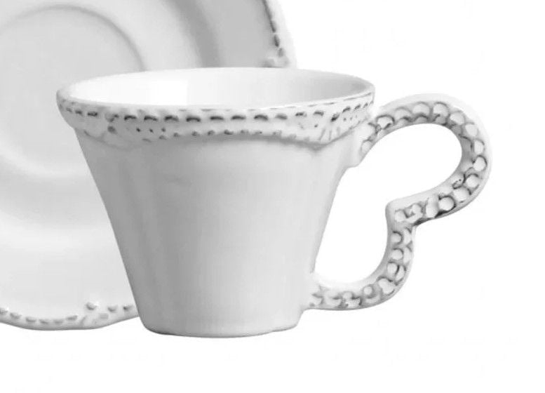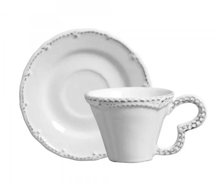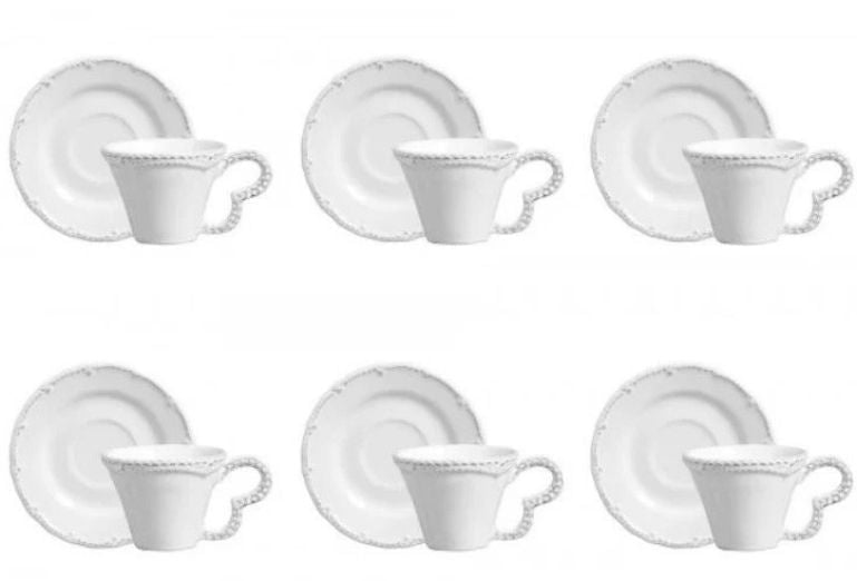 Jogo de 6 Xicaras com Píres Rendada Provence Branca 200ml