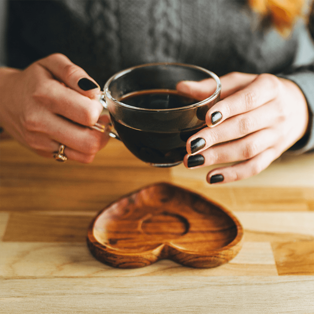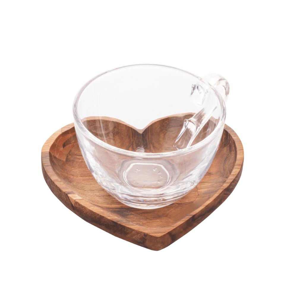A Xícara de Chá com Prato de Coração Madeira Teca deixará sua hora do café ainda mais bonita e elegante.