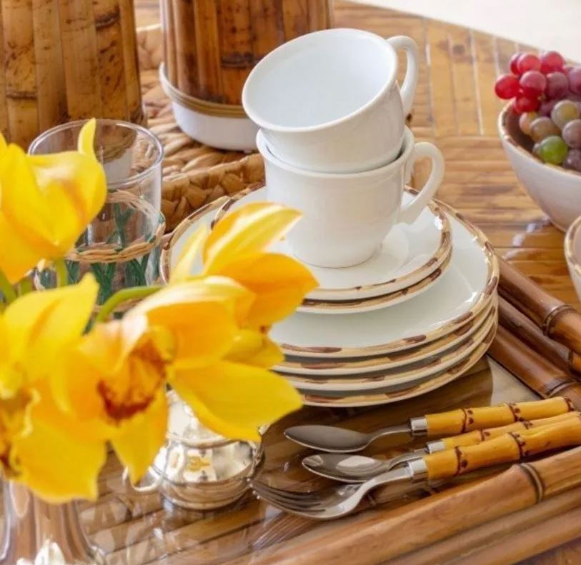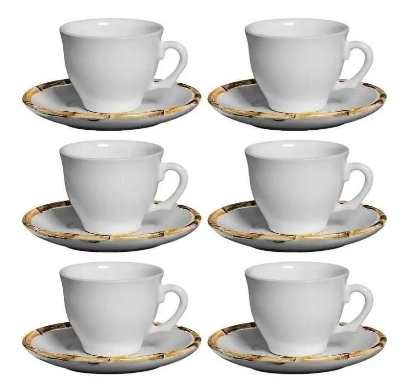 Jogo de 6 Xicaras para Café com Pires em Bambu Branco 100ml