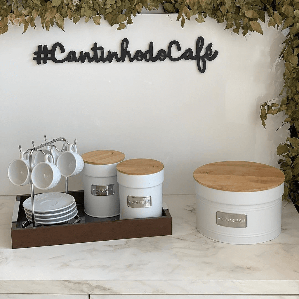 Funcionalidade, Beleza e Organização.Organize e conserve seus condimentos.Lata Porta Condimentos Açúcar Branco Matte Sugar 1 Litro Branco, é ideal para organizar seu cantinho do café na bancada da cozinha ou armários, proporcionando mais organização, com uma plaquinha de identificação com o dizer 'Sugar', tampa em bambu com ótima vedação, e dando um chame a peça.É ideal para quem procura versatilidade e otimização do espaço.Com um design redondo, organiza seu cantinho.Pode ser montando um kit, do mesmo modelo com plaquinha de outros dizeres.Benefícios do Produto:-Organizar seu cantinho;-Otimizar seu espaço;-Proteger seus condimentos de insetos entre outros;