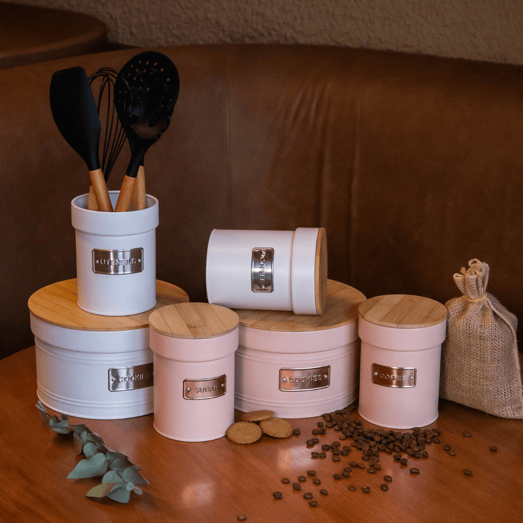 A Lata Porta Condimentos Açúcar Rose Matte Sugar 1 Litro 14,5cm x 11,2cm, é ideal para conservar seus condimentos e organizar seu cantinho na bancada da cozinha ou armários, gerando mais organização e dando um toque de estilo a sua decoração, com o escrito de identificação com o dizer 'Sugar', em metal e com tampa em bambu, dando um toque de charme e modernidade a peça.Tampa com excelente vedação.É ideal para quem procura versatilidade e otimização do espaço.Com um design redondo, organiza seu cantinho.