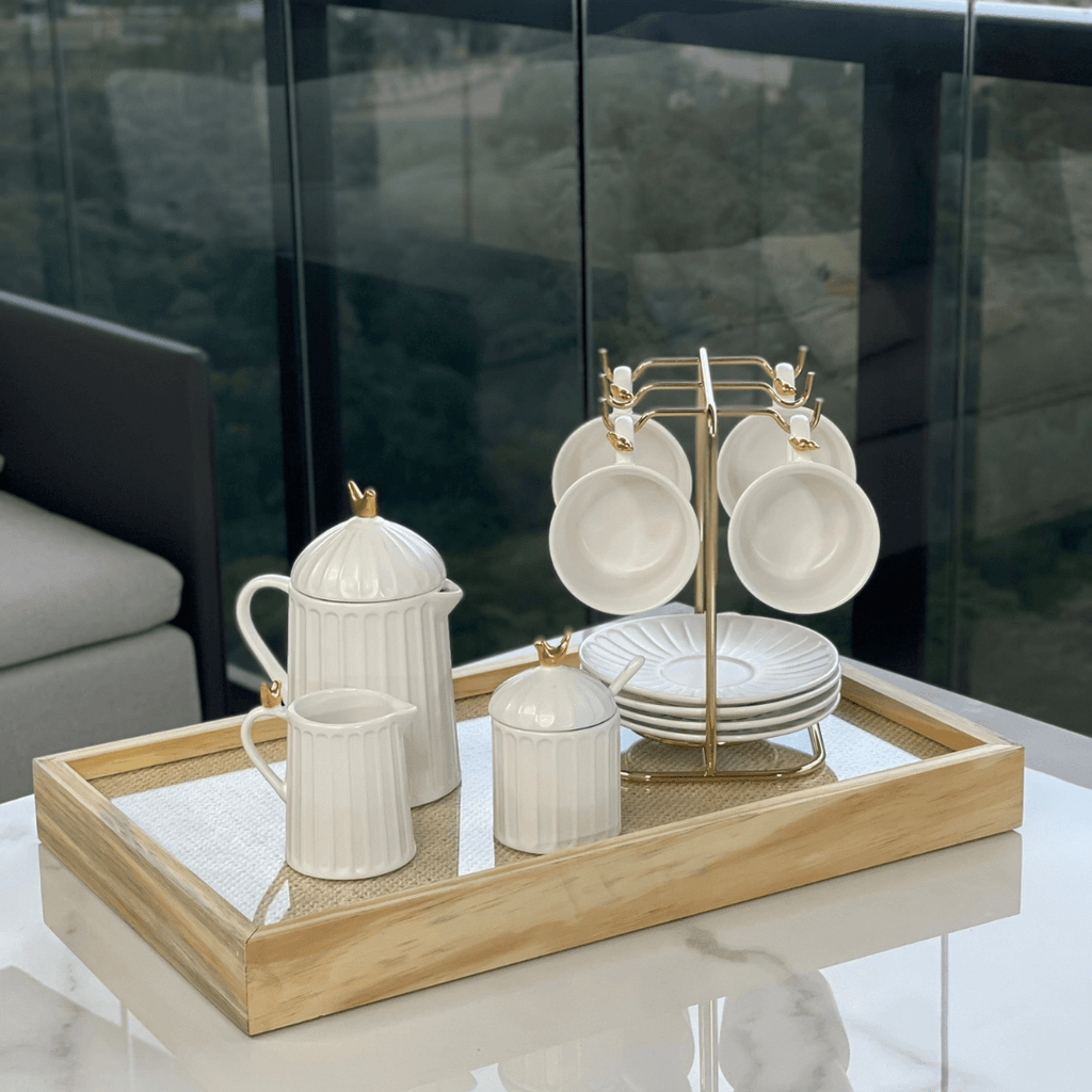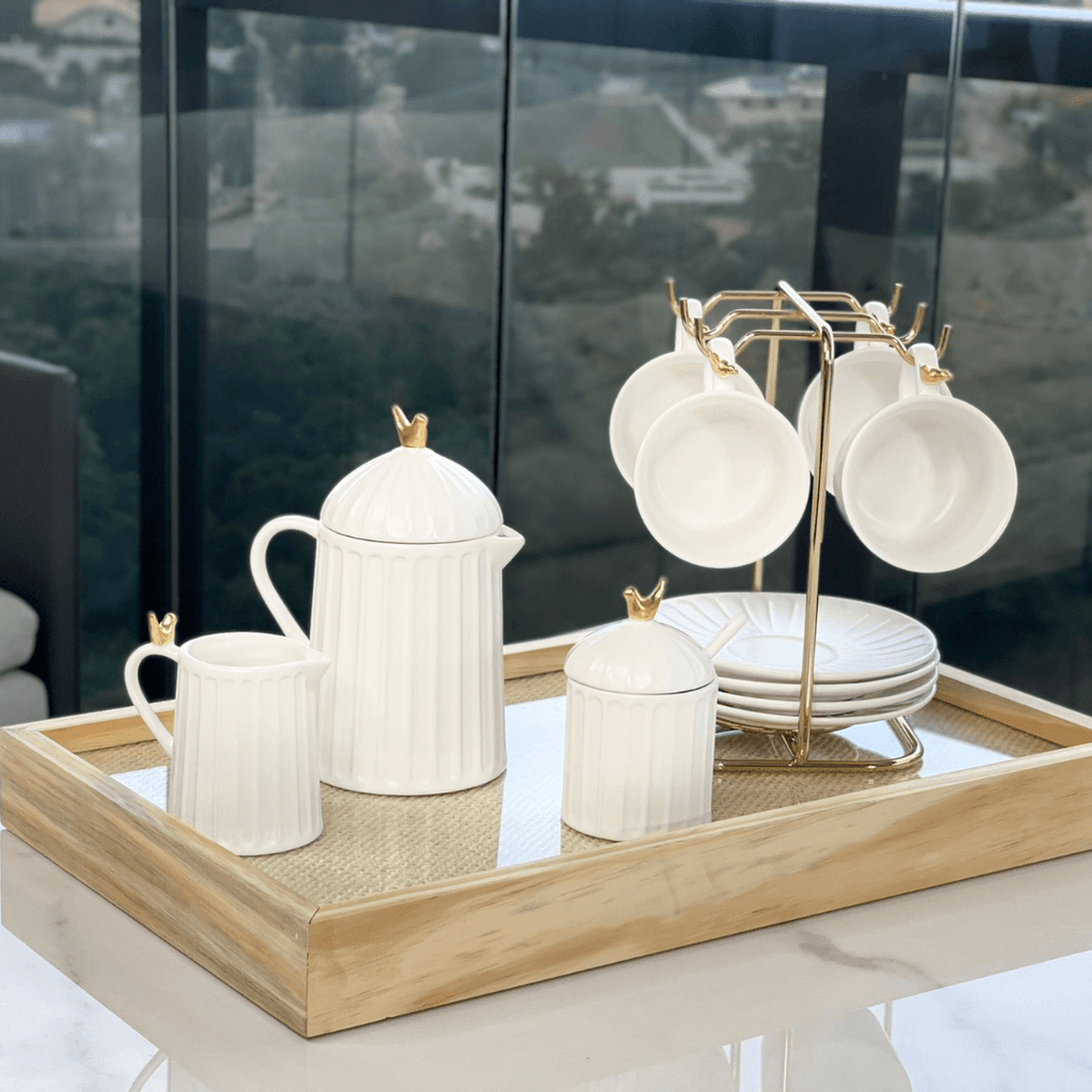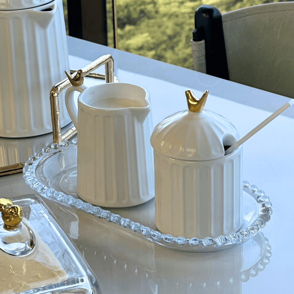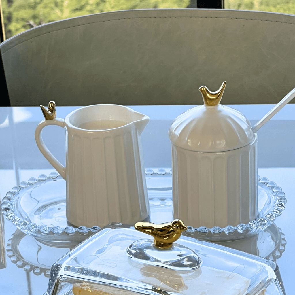 Apresenta um lindo detalhe em formato de pássaro dourado na alça da jarra leiteira que oferece beleza única à peça;