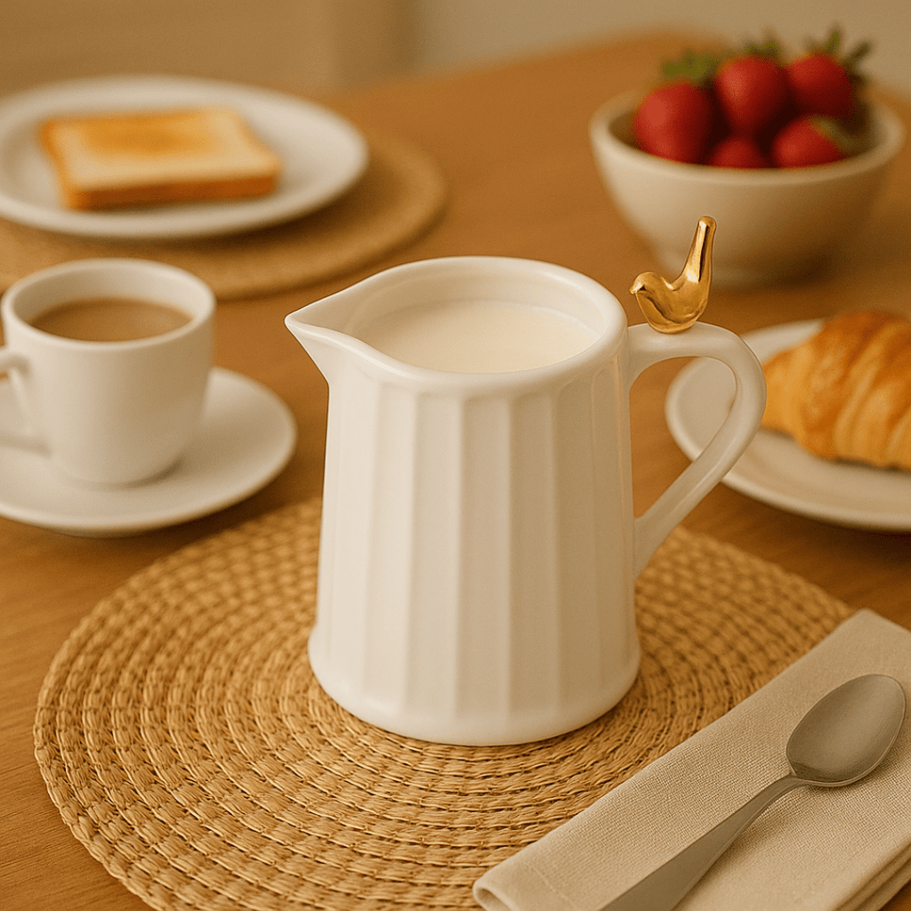 Proporcione uma mesa elegante, sofisticada e organizada com a Leiteira Cerâmica Branca 180ml Colibri.