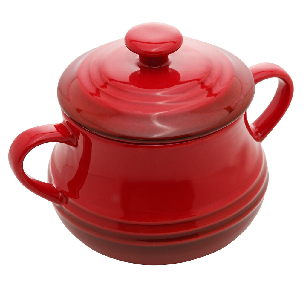 • Confeccionado em cerâmica de qualidade com acabamento na cor vermelha, esse pote ainda possui uma tampa que protege seu alimento;