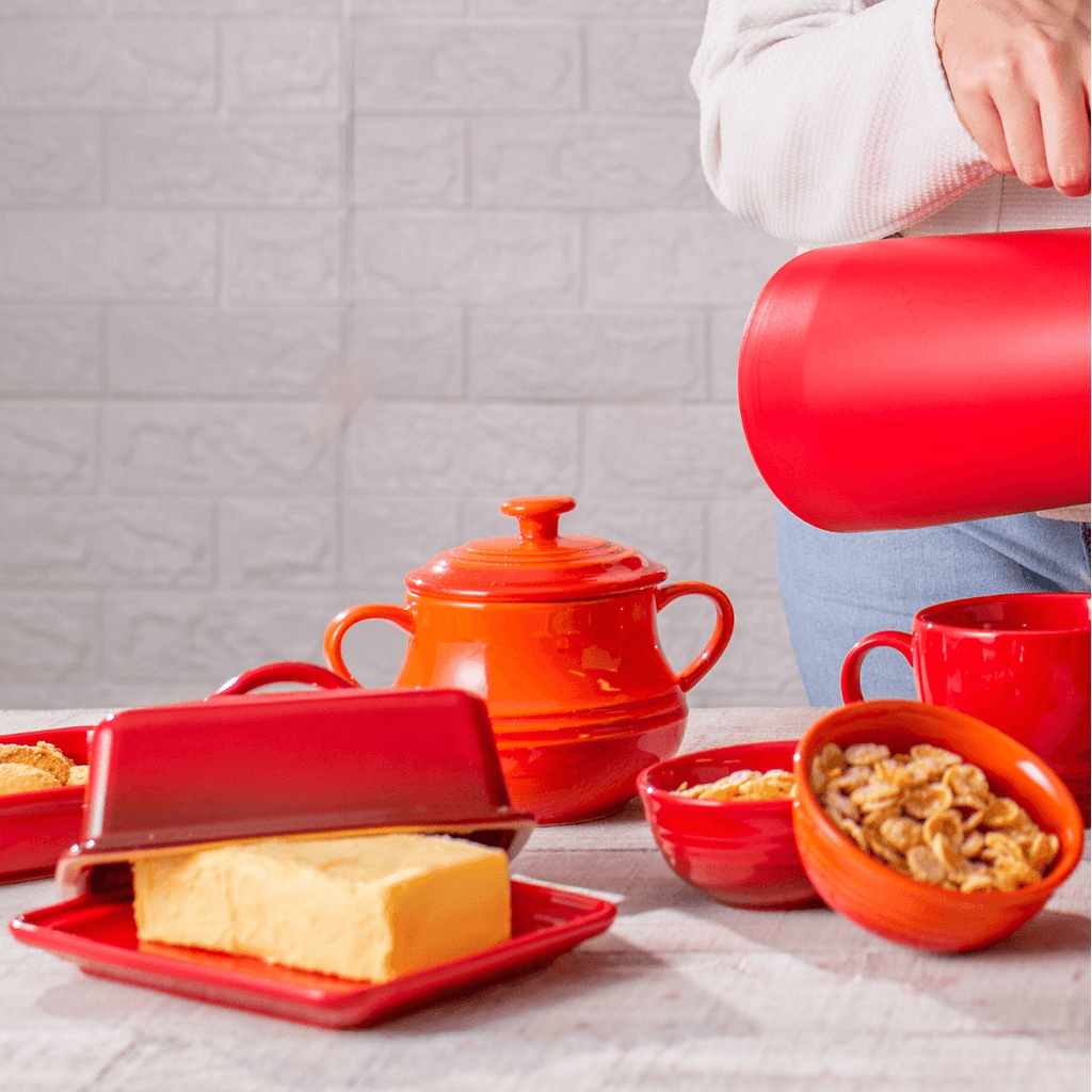 O Pote de Cerâmica Retrô Vermelho 16,5cm é uma peça decorativa e funcional que vai fazer toda diferença na sua mesa posta.