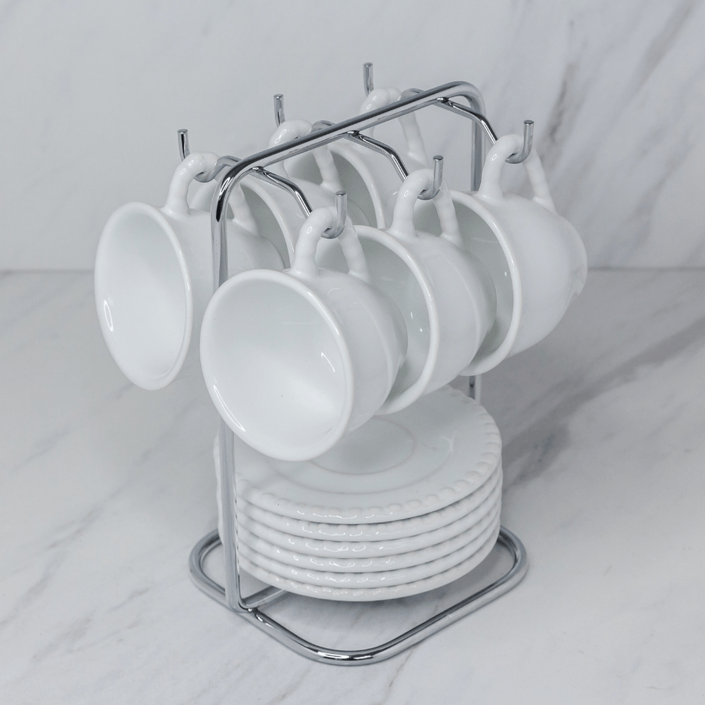 - Acomoda 06 xícaras de café ou 04 xícaras de chá facilmente, garantindo uma organização especial para sua louça.