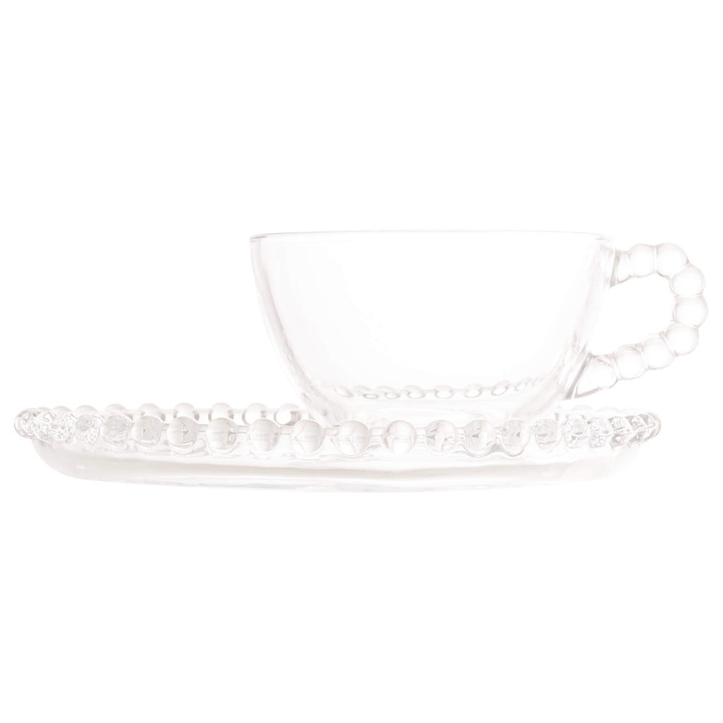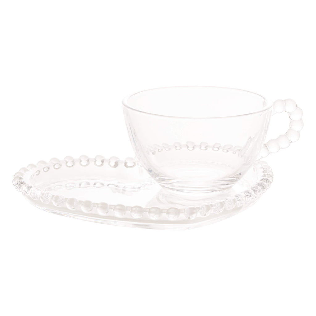 A Xícara de Chá Cristal com Prato de Coração Pearl - 180 ml é perfeita para compor a decoração da sua mesa posta de café da manhã ou da tarde.