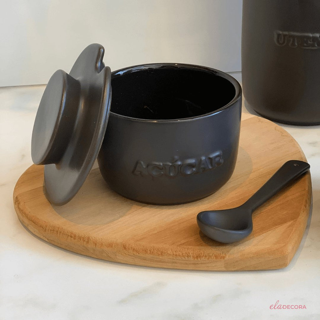 O Açucareiro com Colher em Cerâmica Chumbo é peça chave no momento de decorar a sua mesa e apreciar seus melhores momentos sem perder a praticidade e facilidade, trazendo um estilo especial e contemporâneo para seu espaço.O açucareiro acompanha uma belíssima colher para auxiliar no manuseio e no momento de pegar o açúcar, além de possuir o acabamento na incrível cor chumbo que traz um toque moderno e charmoso ao item.