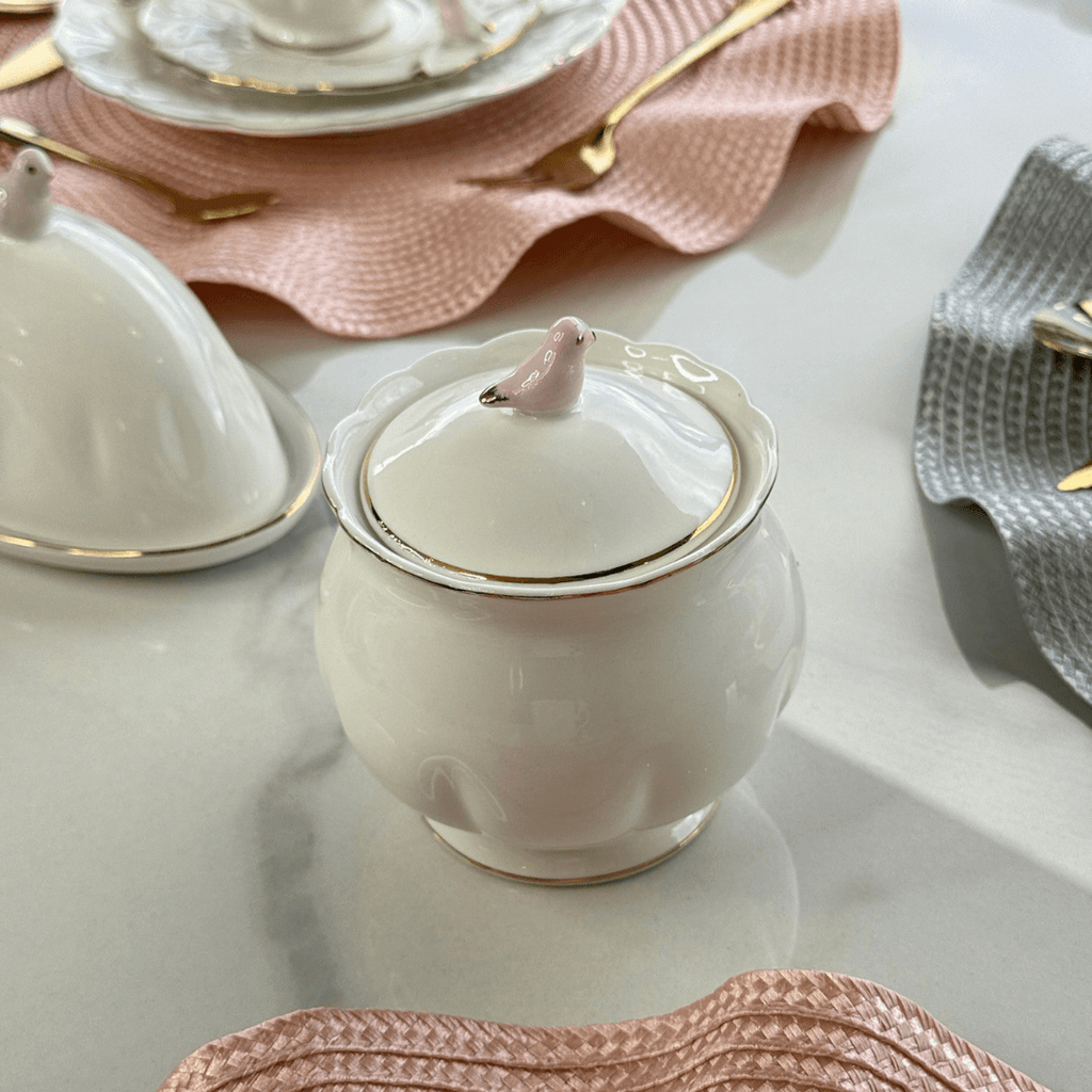 Açucareiro em Porcelana Birds Branco 300ml