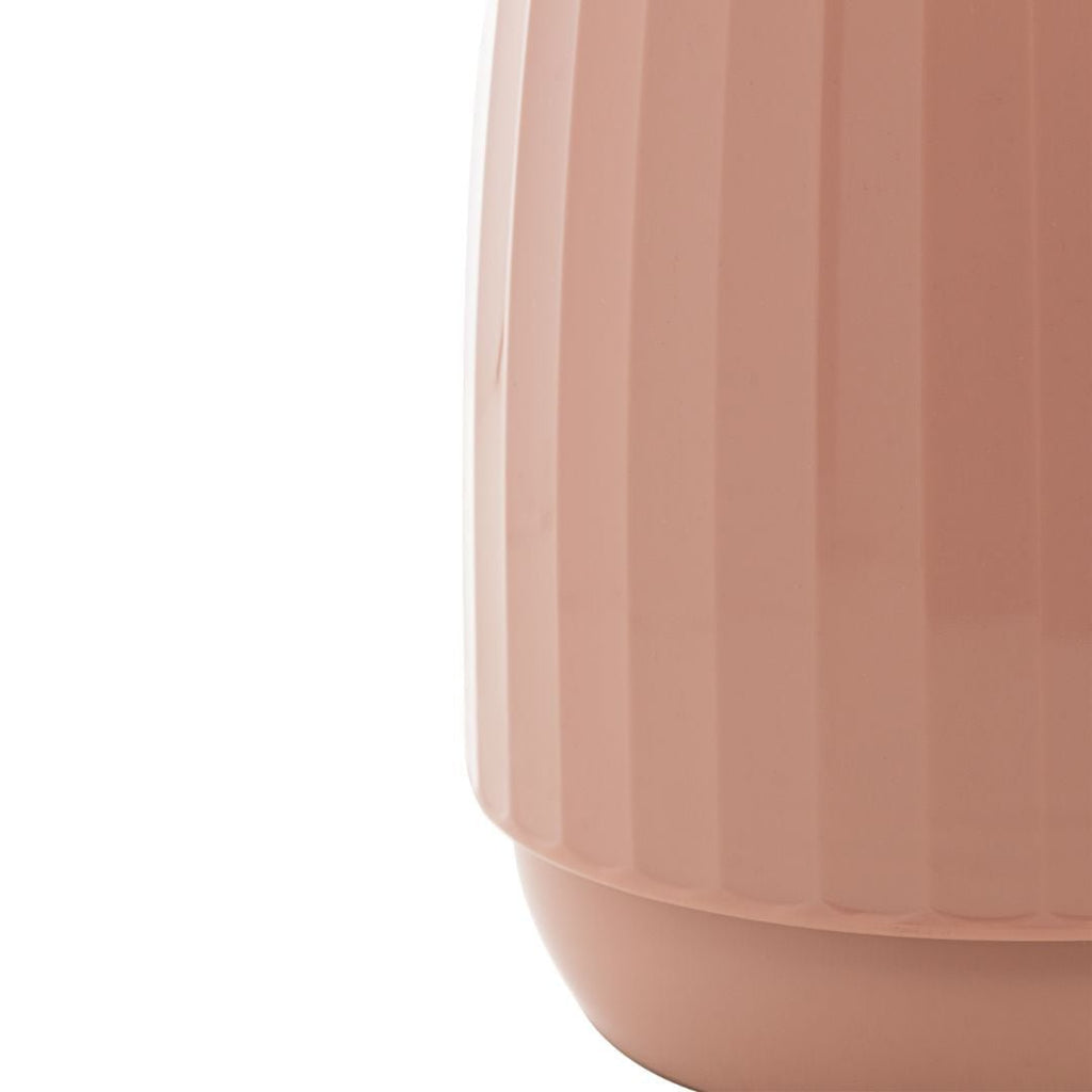 - Produzida em plástico resistente, vidro interno e acabamento estilo Bambu em rose;