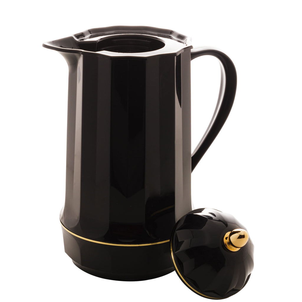 Um Charme à mesa. Preparar aquela mesa com muito amor e carinho para quem ama, pede uma produtos lindos e de qualidade. A garrafa Térmica além de linda é funcional. Ideal para manter seu cafezinho, chá, leite, chocolate quente ou ate mesmo sua agua quentinha.Na cor preta com detalhe em dourado, da um toque de sofisticação a peça.Deixe sua mesa posta linda elegante e funcional. Benefícios do Produto:• Design sofisticado e moderno;• Charme e versatilidade;• Capacidade para 1 Litro;