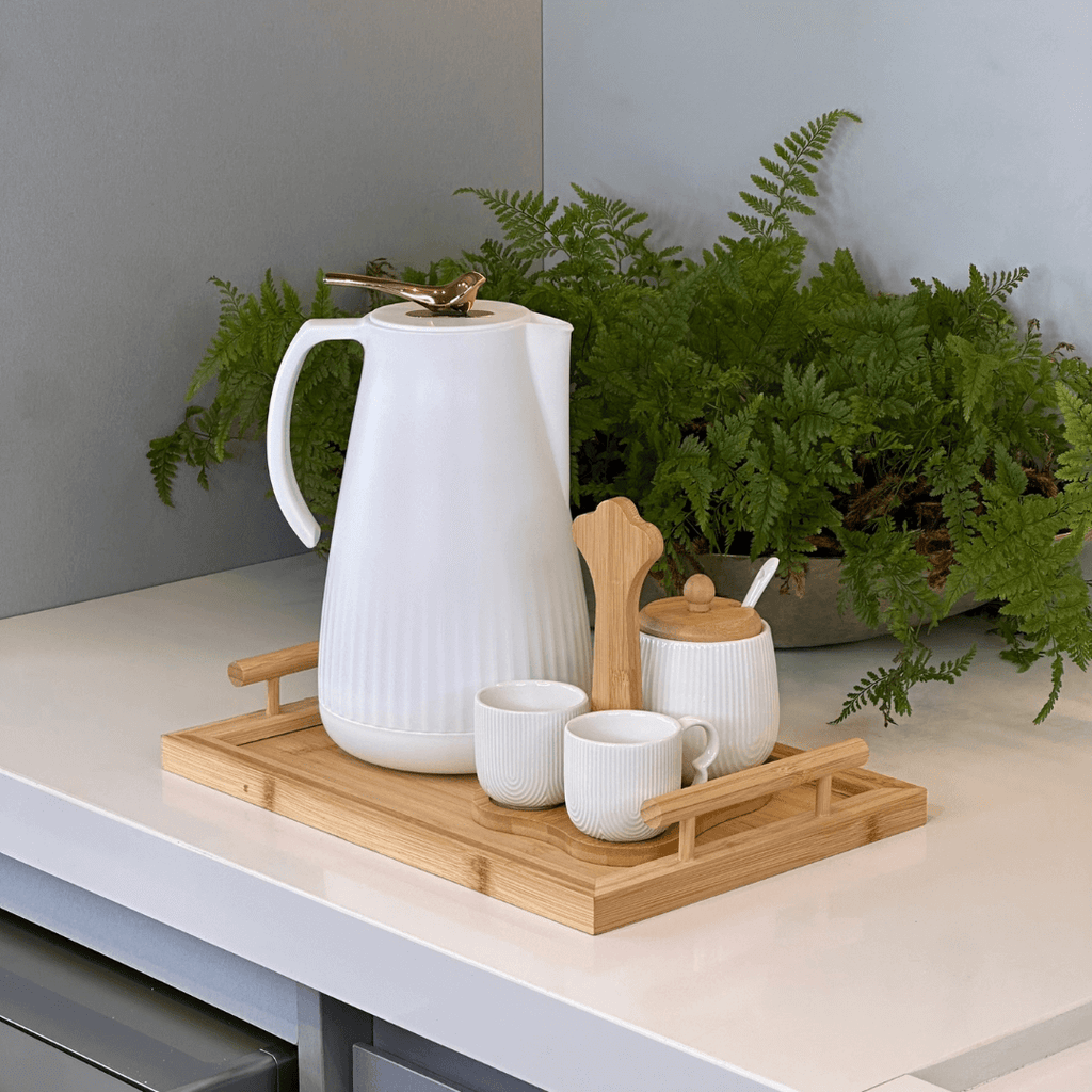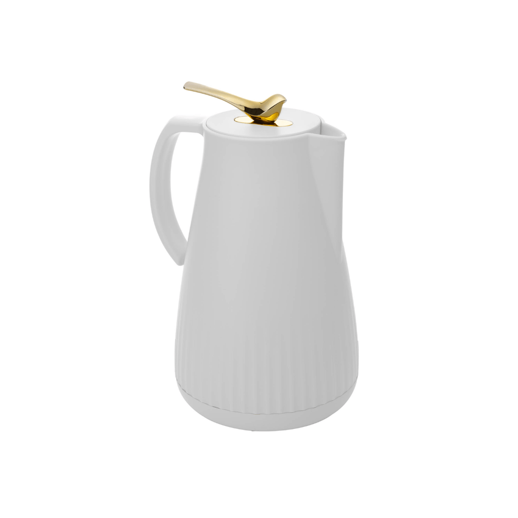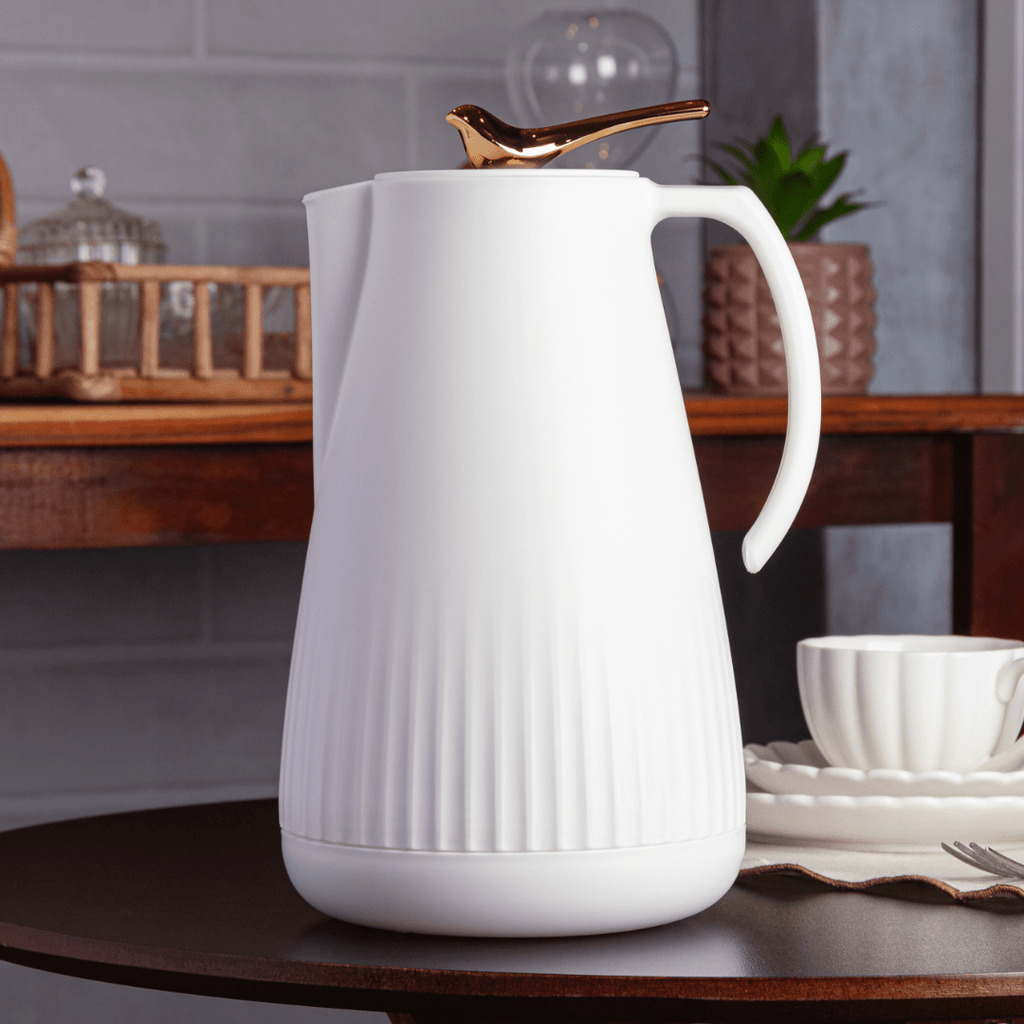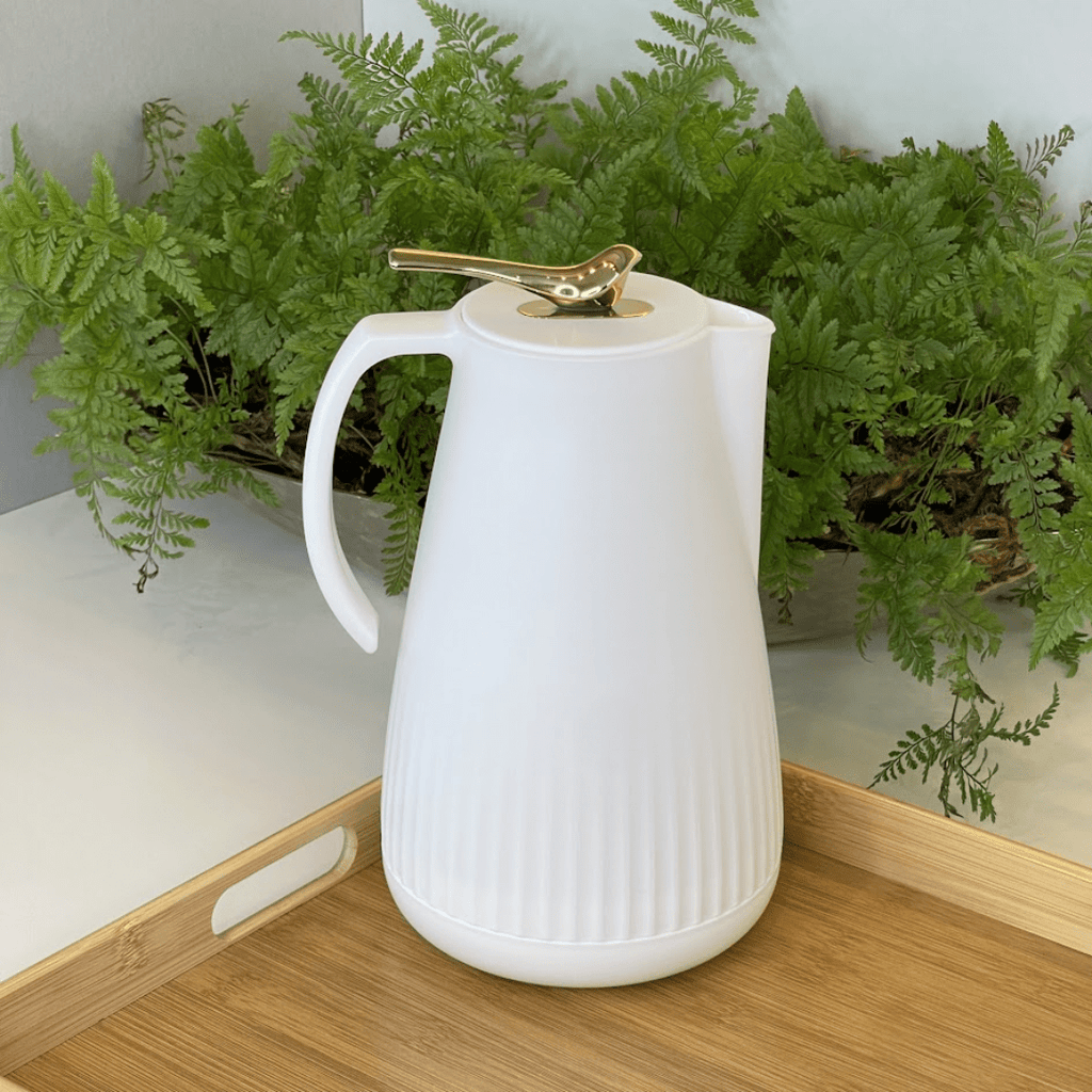 Desfrute de uma decoração ainda mais elegante em seu cantinho do café com a Garrafa Termica de Plástico New Bird Branca 1 Litro.