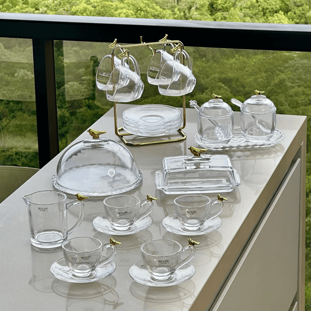 Torne seus momentos de café ainda mais especiais com o Kit para Mesa Posta de Café Linha Golden Bird 7 Peças.