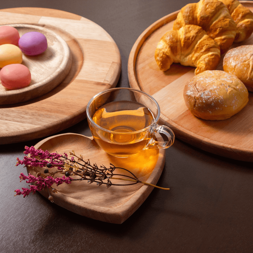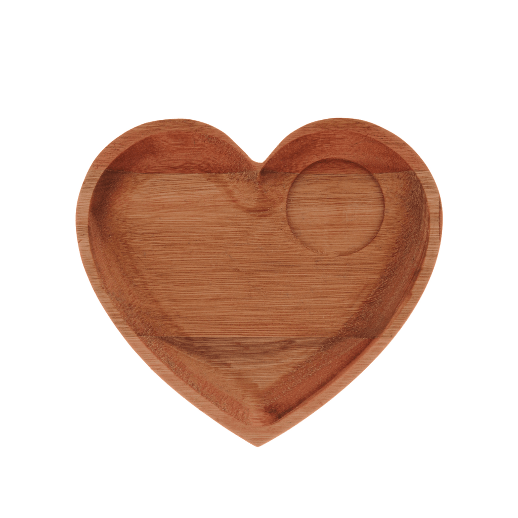 - O formato de coração do prato em madeira liptus oferece um toque especial e afetuoso à composição;